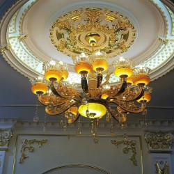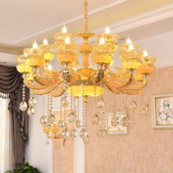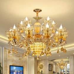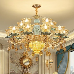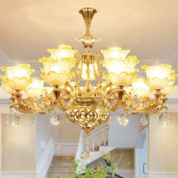 • Đèn Chùm, Đèn Chùm Tân Cổ Điển Đá 874 Vàng 15 Tay Kiểu Dáng Hiện Đại Trang Trí Phòng Khách Sang Trọng
