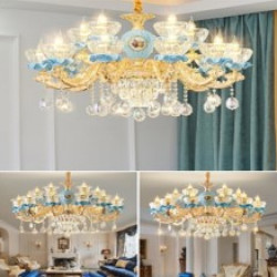 • Đèn chùm thả trần 8017 tân cổ điển 15 tay phong cách Bắc Âu trang trí phòng khách sang trọng