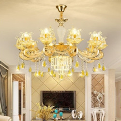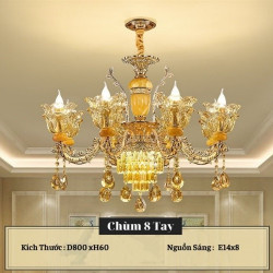 • Đèn Chùm, Đèn Chùm Tân Cổ Điển Đá 874 Vàng 8 Tay Kiểu Dáng Hiện Đại Trang Trí Phòng Khách Sang Trọng