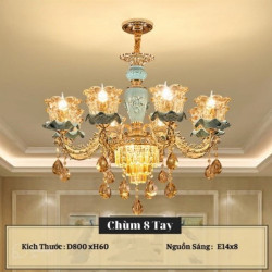 • Đèn Chùm, Đèn Chùm Thả Trần Tân Cổ Điển 226/ 8 Tay Trang Trí Phòng Khách Sang Trọng
