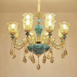 • Đèn chùm thả trần tân cổ điển 603/8hoa văn đá xanh cao cấp sang trọng trang trí phòng khách