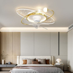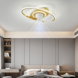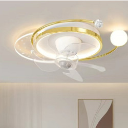• Quạt Đèn Ốp Trần (Vàng) Chung Cư Trang Trí Phòng Khách, Phòng Ngủ Led 3 Màu Điều Khiển